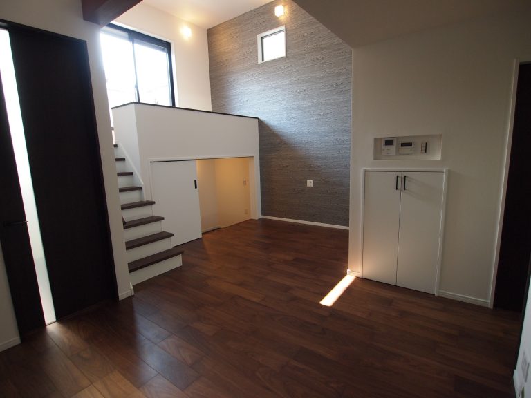1階ロフト 吹抜 壁掛けTV ハイドア
